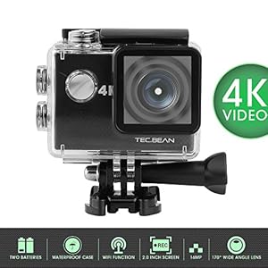 TEC.BEAN 4K Sport Action Camera 16MP WIFI Waterproof Camera 2inch LCD Screen 170 Ultra Wide-Angle Lens,2pcs Rechargeable…