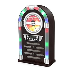 iTek I60018CD Table Top Jukebox with CD Player, FM Radio and Bluetooth Connection, Remote Control Included, Wood Finish…