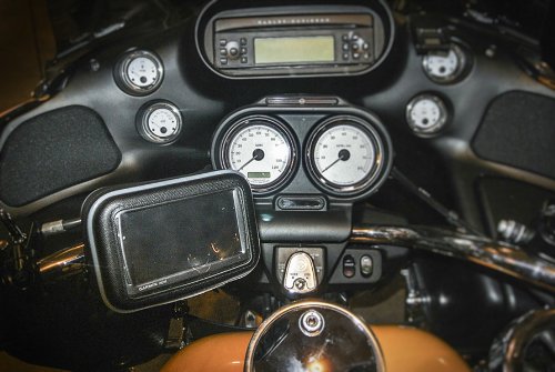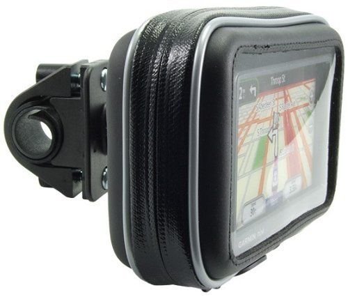 Arkon’s GPS032 handlebar mount fits GPS devices up to 4.3″ in screen size and is compatible with selected Garmin, TomTom, and Magellan GPS. This mount package includes Arkon’s Bicycle/Motorcycle Handlebar Mount with Water-Resistant GPS Holder. The bicycle/motorcycle mount fits on handlebars measuring up to 33mm in diameter and is easy to install with a Phillips screwdriver. The mount’s swivel ball adapter head rotates 360°, providing the ultimate flexibility in viewing the GPS from any angle. The water-resistant case zips open for easy access to the device and features a touch-compatible plastic face that allows you to operate the GPS with the case on.