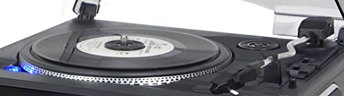 NEW PRO Style Deck features include: S type aluminium metal tone arm, Pitch Control, Strobe Illuminator & Flip Over Stylus = 1 stylus to play both Vinyl LP 33’s & Singles 45’s & Flip over for 78rpm records. Bluetooth – Plays music to the music centre’s large speakers from a Mobile Phone, iPhone, iPod, MP3 player, Computer etc using the Bluetooth, so no wires!