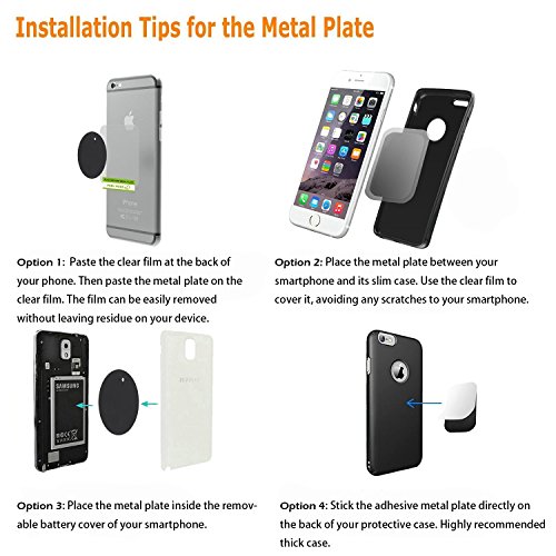 Operation Has Never Been Easier – Very easy installation! Just attached the mount to the windshield or to the dashboard, put the magnet between your phone and your phone case or stick on the round magnet to your phone, and you are done!