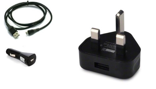 3 in 1 charing pack, including usb mains charger, usb car charger, and usb cable