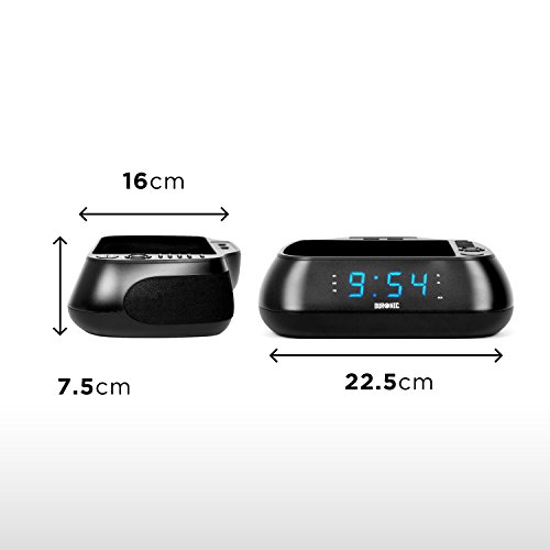 WAKE UP TO YOUR FAVOURITE RADIO STATION – Wake up every morning to the sound of the buzzer or your favourite radio station at the exact time you set the alarm clock. The Duronic ACR02 has a frosted black body with a soft blue LED light clock display which will comfortably look beautiful on your bedside cabinet.