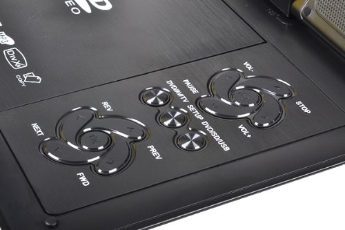 Portable DVD with High Resolution 9.8″ TFT LCD Screen. l 180 Degrees Swivel Screen – Folds completely flat. l Piano Gloss Finish.