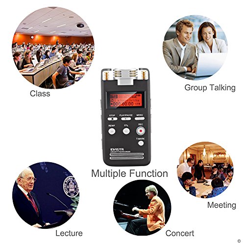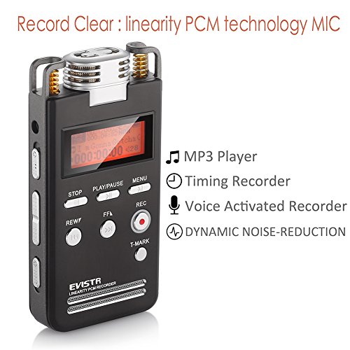 VOICE RECORDER & MP3 PLAYER: EVISTR digital voice recorder built-in MP3 music player function, you could directly playback recorded sound on this gadget. it is a great gift for journalist, student in lecture, writer, podcast, audio blogger, anyone who need a small and clear portable voice recorder