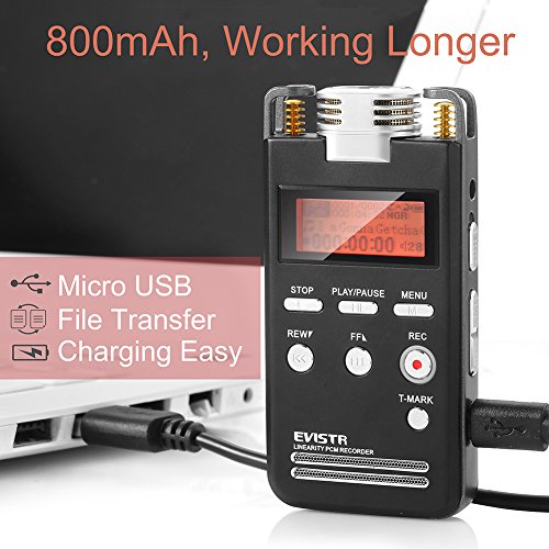 Recording Clear: EVISTR L53 equipped with sensitive microphone, dedicated gain control & audio processing unit. Let you enjoy 1536KPBS flawless recording audio, catch clear voice, NEVER miss an important word!