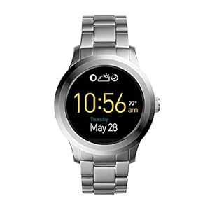Fossil Q men connected watch – Smoke grey round stainless steel case (diameter: 45 mm) in brushed finishing, IP67 certification (dust, rain, splashing and accidental submersion protection) and crowned bezel