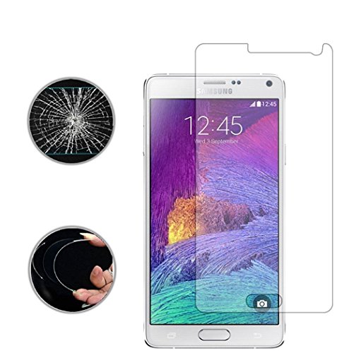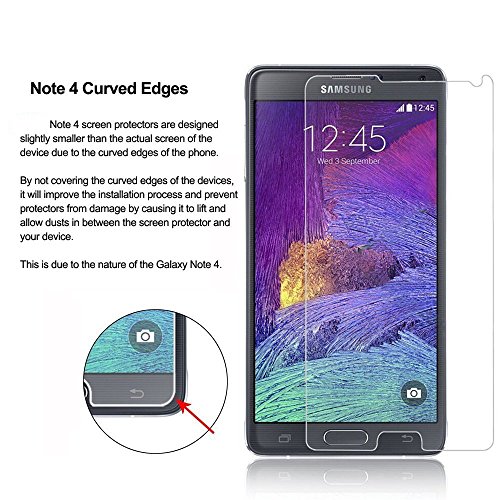 [Crystal clear long-term protection through 9H tempered glass] the glass film is made of high-quality glass, which allows a transparency of almost 100% and thus ensures minimal colour distortion and optimal light distribution. This prevents cracks and reduces the risk of glass breakage on your Galaxy Note 4 screen due to the extremely high degree of hardness of 9H