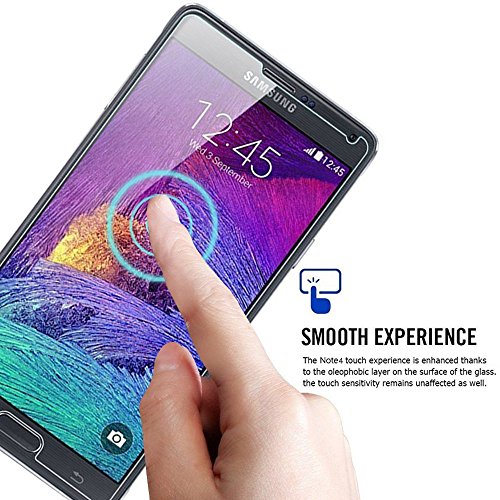 [Hydrophobic and oleophobe] the glass film protects your phone from dust and scratches. It avoids fingerprints. Dirt can be easily removed from the Galaxy Note 4 tempered glass film.
