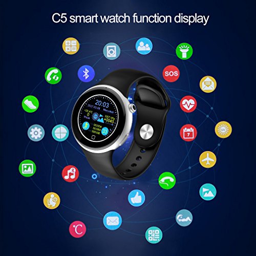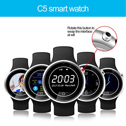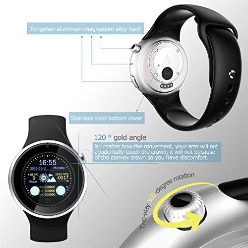 MULTIFUNCTION: Phonebook / call log / message / music sync function, 2-way 360 degree rotating crown, UV detection, Remote capture, Sleep monitoring, Pedometer, Heart rate monitor,etc. Life Water-resistant(Pls don’t put it in water directly).Make a really smart life for you!