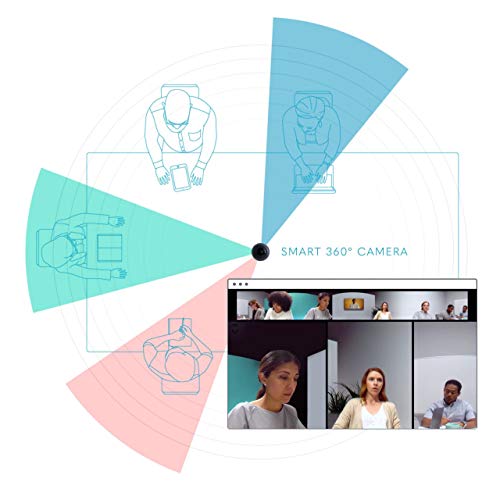 SEE AND HEAR YOUR TEAM CLEARLY with the 360 degree lens that allows users to see in all directions while an 8 microphone array ensures everyone within a 12 feet radius can be heard.