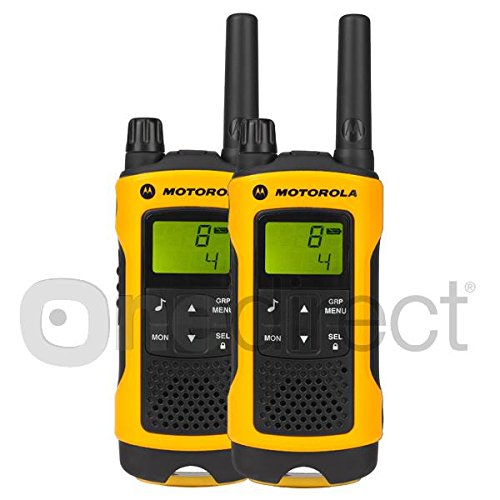 Licence-free (PMR446) weather-proof radios with up to 10Km range, 8 channels, 10 call tones, handsfree function, LED Torch and Vibrate Alert