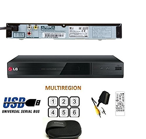 This LG DP132 MULTIREGION DVD is capable of playing back DVDs from anywhere in the world (USA, JAPAN, Far East , India, Middle East, Africa, Australia and Europe etc.). It is special compact size to fit in small space . The DP132 supports multiple media formats like DVD, DivX, CD and MP3. It also has a USB port that allows you to connect a USB storage device to view photos, watch videos and listen to music. Additional conveniences include zoom capability, a screen saver and parental lock option. This unit comes with Phono to Scart connection lead and full function remote. (PLEASE NOTE; THIS UNIT HAS NO HDMI CONNECTION . YOU CAN CONNECT TO SCART WITH LEAD PROVIDED OR TO RGB (COMPONENT) WITH OPTIONAL LEAD NOT SUPPLIED. PLEASE NOTE THAT THE INCLUDED LEAD IS SPECIAL IN SO FAR AS THERE IS ONLY 5 PINS IN THE SCART END. NOT A FAULTY CABLE). The bundle includes a Samsung case/Wallet for general use.