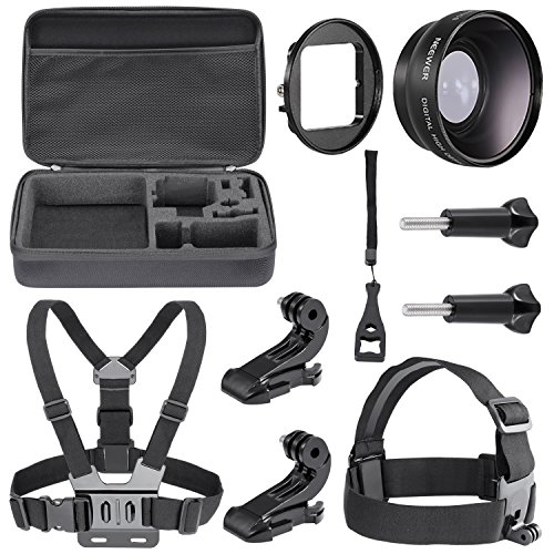 Kit Includes: 1 * Protective Case, 1 * Head Strap, 1 * Chest Strap, 1 * J-Hook, 1 * 52mm 0.45X Wide Angle Lens, 1 * Lens Bag, 1 * 52mm Lens Adapter, 1 * Microfiber Cleaning Cloth, 1 * Wrench.