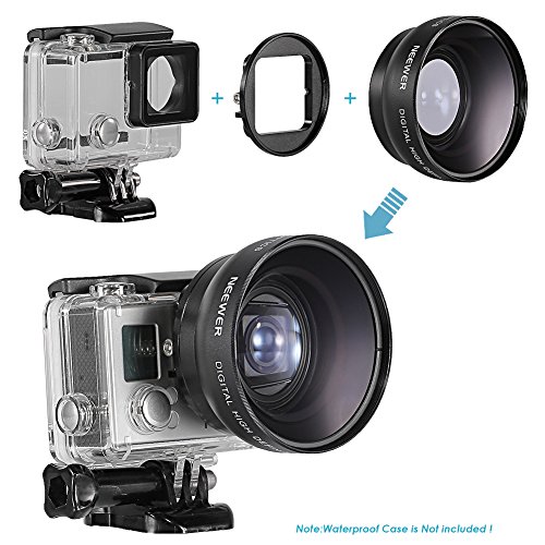 Application 1: 52mm Lens Adapter + 52mm Wide Angle Lens: Compatible with Gopro Hero 3+/4 ONLY! Can be separated in two pieces (unscrewed): macro part and wide angle part.