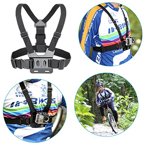 Application 2: Chest Strap + J-Hook Buckle + Long Screw Bolt. The Chest Harness Strap Belt and J-Hook Buckle helps your Gopro camera to have a shooting and recording steadily on the chest. Used in Parachuting bicycle riding, swimming, diving, skating and other outdoor sports.