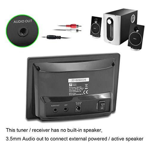 The tuner / receiver has NO BUILT-IN SPEAKER is designed to connect with your stereo system via the 3.5 mm audio output jack on the unit.