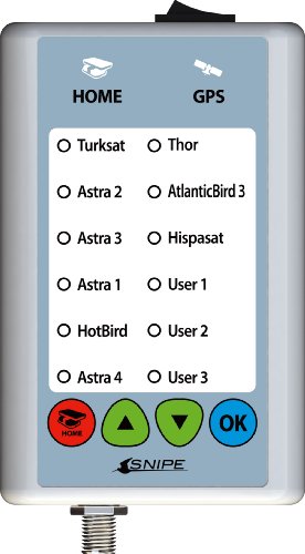 The easy to use remote control allows you to select any of the satellites at a push of a button, to ensure optimum performance. The Snipe has nine pre-programmed satellites and also allows you to programme in up to three additional satellites using the user I, 2, 3 options on the remote control.