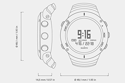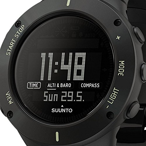 This men’s Suunto Core Ultimate Black watch has a stainless steel and resin case and is fitted with a chronograph quartz movement. It fastens a black rubber strap and has a LCD dial. The watch has a date function. Includes alarm function.