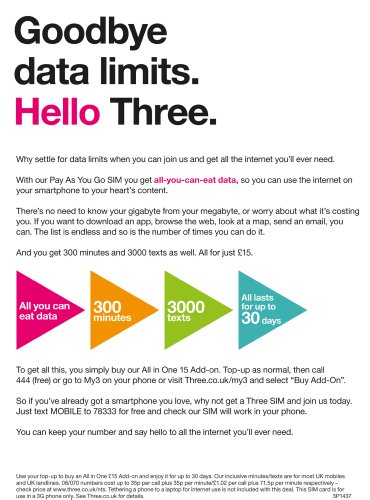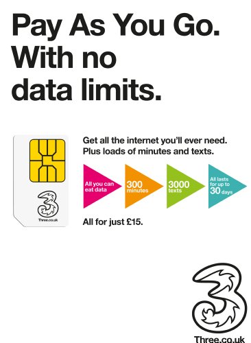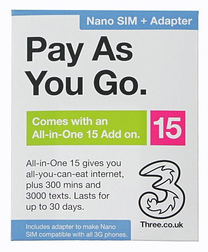 Sim pre-loaded with All-in-One £15 Add-On gives you All-You-Can-Eat Data, 300 minutes and 3000 texts for up to 30 days, to get you started