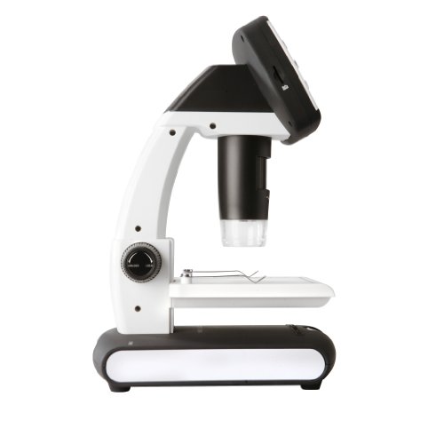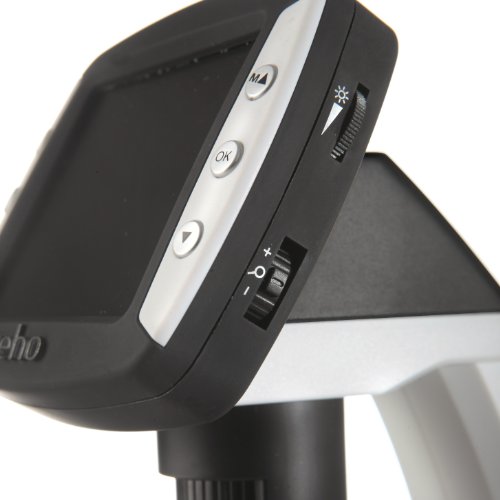 Standalone microscope with LCD screen, microSD internal memory slot and rechargeable battery