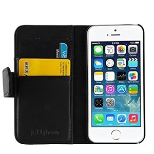 Jellybean Leather Black Wallet Leather Case & Stylus Pen For Apple iphone 5 5s