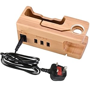 AMIR Phone Stand, Watch Stand, Bamboo Wood Charging Stand, Charge Dock Holder with 3 USB Ports,Desktop Smart Charging…