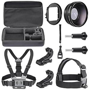 Neewer 6-in-1 Essential Optical Accessory Lens Kit for Gopro Hero 3+ Hero 4 , Kit Includes: 12.8×8.46×2.48″ / 32.5×21.5×6.3cm Protective Carry Case + Head Belt Strap + Chest Belt Strap + 52mm 0.45X High Definition Wide Angle Lens + Lens Filter Ring Adapter + Cleaning Cloth + Surface J-hook + Wrench